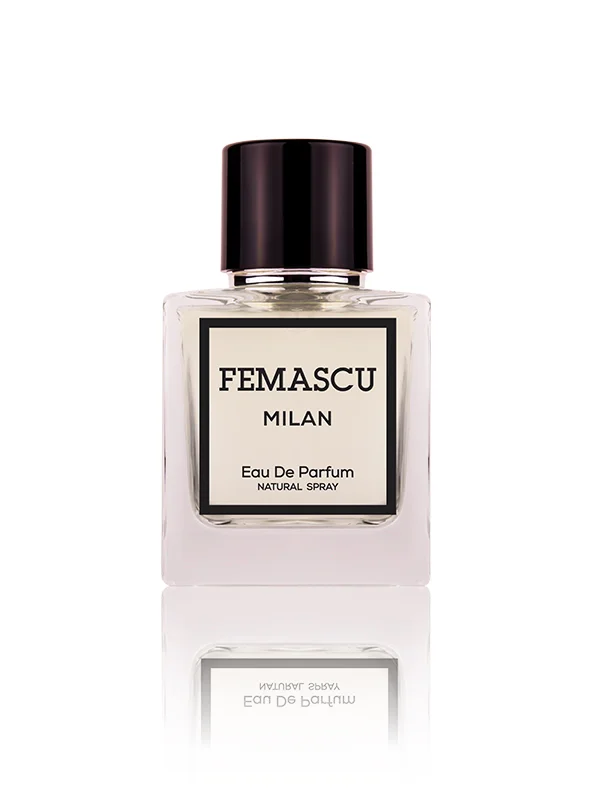 “FEMASCU’s “MILAN” perfume, a touch of the famous fashion city Milan. Lemon and strawberry meet woody scents with a hint of vanilla. A fragrance that embodies the elegance and beauty of high fashion.”