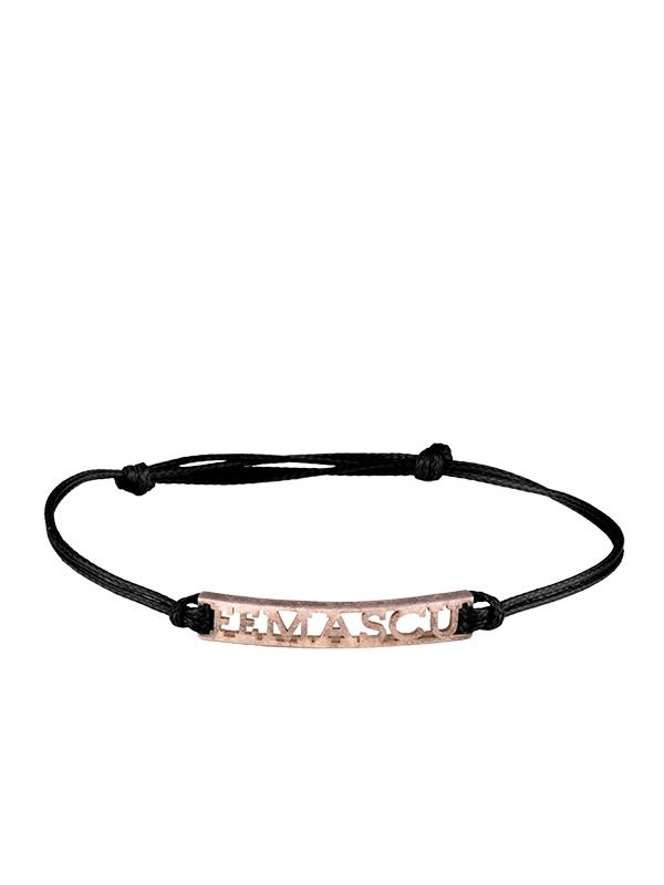 “Femascu logosu bulunan şık gümüş-siyah bileklik. Cesur ve minimalist bir tarzla modern stil için tasarlanmıştır.”